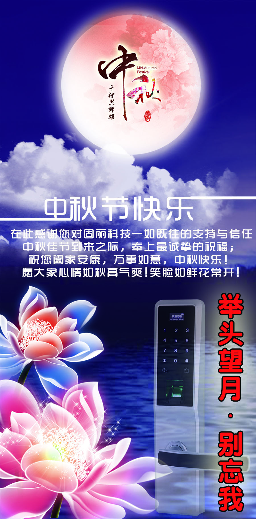 尊敬的客戶:感謝您對(duì)固麗科技長期以來的支持和厚愛,月到中秋分外明,又是一年團(tuán)圓日。在這中秋月圓之際,在這親朋團(tuán)圓之日,我公司為您送上誠摯的祝福,祝您身體健康,事業(yè)興旺,笑臉相伴,生意興隆,中秋月圓,美夢(mèng)成真!祝您及您的家人中秋快樂,幸福美滿!