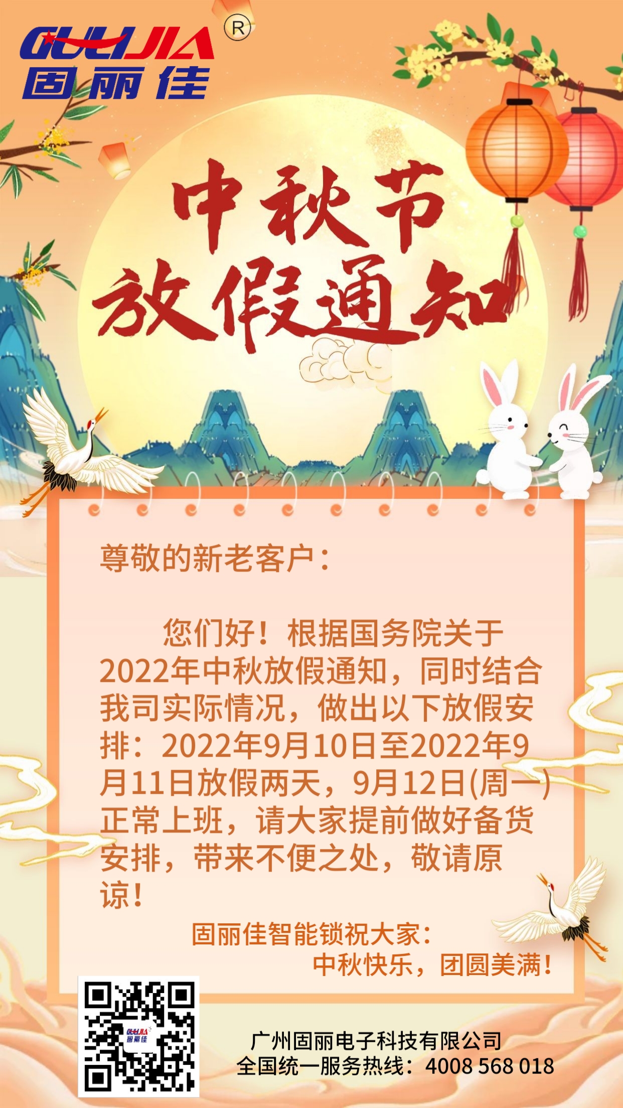固麗佳中秋節(jié)放假通知