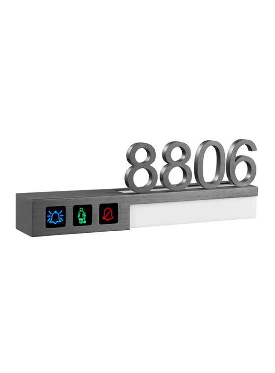 獨家設(shè)計“請勿打擾“燈亮?xí)r,按門鈴不響應(yīng),解除客人的煩惱,給客人更多的私人空間,提高服務(wù)質(zhì)量。LED背光觸摸實現(xiàn)房態(tài)控制,燈位指示一目了然,有利于夜間識別,符合現(xiàn)代潮 流。