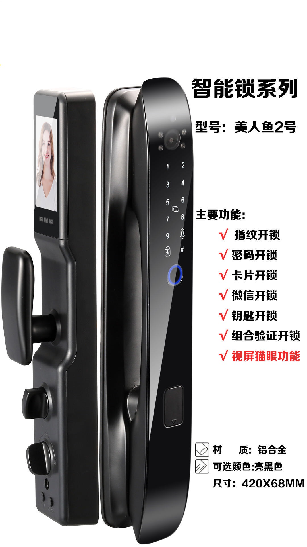 功能:指紋開鎖,密碼開鎖,微信開鎖,卡片開鎖,視頻貓眼功能