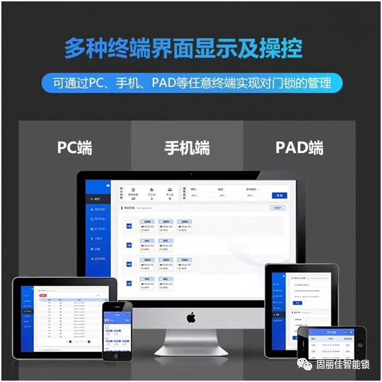 這樣一家高端智能公寓不僅僅在要服務(wù)上有特色,更有有專業(yè)化、規(guī)范化、個性化、智能化的管理。固麗佳LORA無線聯(lián)網(wǎng)鎖可支持手機、PC、PAD多端界面同步顯示及操控,而且功耗低、穩(wěn)定性強、無線通訊距離遠(yuǎn)。門鎖可同時生效80組在線密碼、離線密碼、在線卡片及加密卡片,同時支持微信二維碼掃碼開鎖,多功能智能網(wǎng)關(guān),搭配聯(lián)網(wǎng)電表、水表使用,門鎖狀態(tài)實時在線,網(wǎng)絡(luò)信號、電池電量、異常報警實時顯示,海量房源實時管理。給房東帶來了巨大的便利,房東無需到現(xiàn)場進行管理,無需當(dāng)面交易,可在線實現(xiàn)催繳房租,報修維護等操作,可實現(xiàn)多房源集中管理。